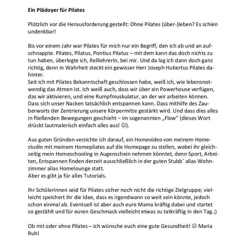 Frau Dr. Ruhl empfiehlt zum Fitbleiben Pilates