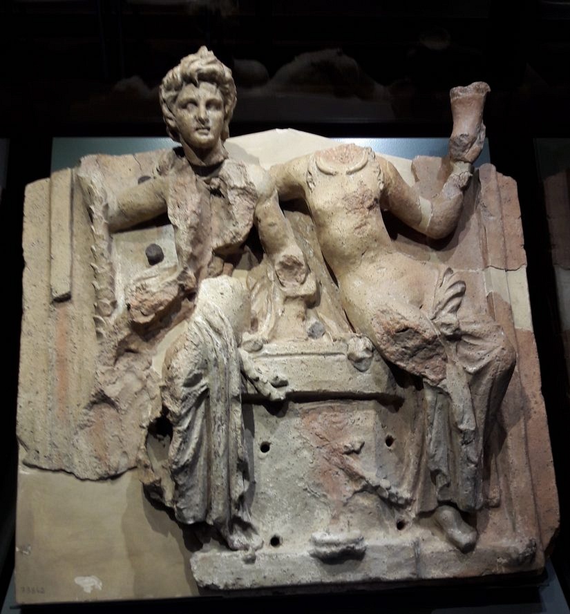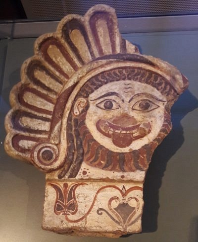 Als um 12 Uhr der Wechsel stattfand, fehlten vier Schülerinnen der Stufe 7, weil sie sich bereits der Führung der Sechstklässlerinnen angeschlossen hatten! Nachdem auch dieses kleine Missgeschick bewältigt war, ging es für uns Siebtklässlerinnen los. Wir wurden von einer netten Archäologin durch die tolle Ausstellung geführt, die hauptsächlich den Jenseitsglauben der Etrusker vorstellte. Es wimmelte von Dämonen und seltsam aussehenden Göttergestalten auf Urnen, Sarkophagen und Stelen, dass es einen nur so gruselte! Wir staunten, wie viele Götternamen die Römer von den Etruskern übernommen haben. Manche von uns wussten über fast alle mythologischen Gestalten Bescheid und konnten damit enorm bei der Archäologin punkten.