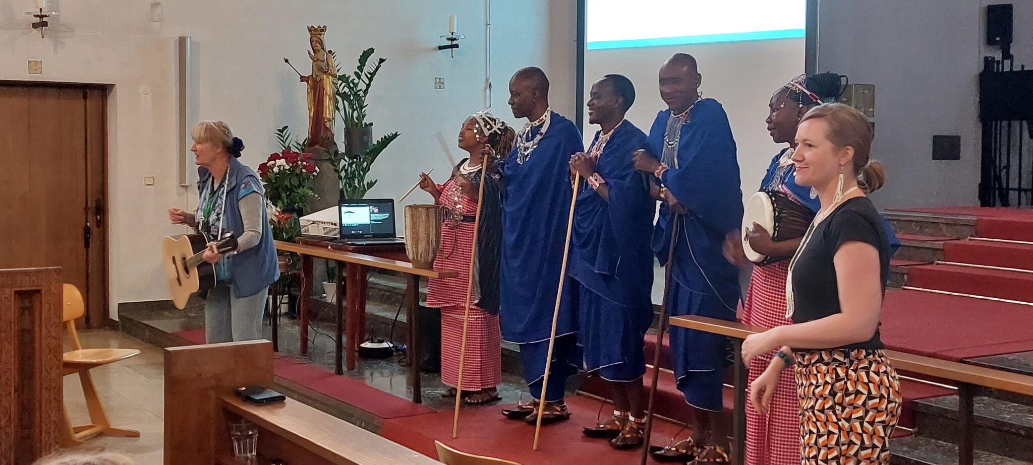 Am 12.09.2025 haben Angelika Wohlenberg, die Gründerin des Vereins „Hilfe für die Massai“, zusammen mit der Mitarbeiterin Sarah Frykowski und fünf Massai unsere Schule besucht. Drei Doppelstunden standen zur Verfügung, in denen die Gruppe allen Jahrgängen der Sekundarstufe I Einblicke in die Projektarbeit gegeben und eindrucksvoll das Leben in der Massaisteppe beschrieben hat. Die Massai trugen typische Massai-Kleidungnd sangen zur Gitarrenmusik von Angelika Wohlenberg – alle Zuhörer wurden so ein Stückchen nach Tansania entführt und waren begeistert!