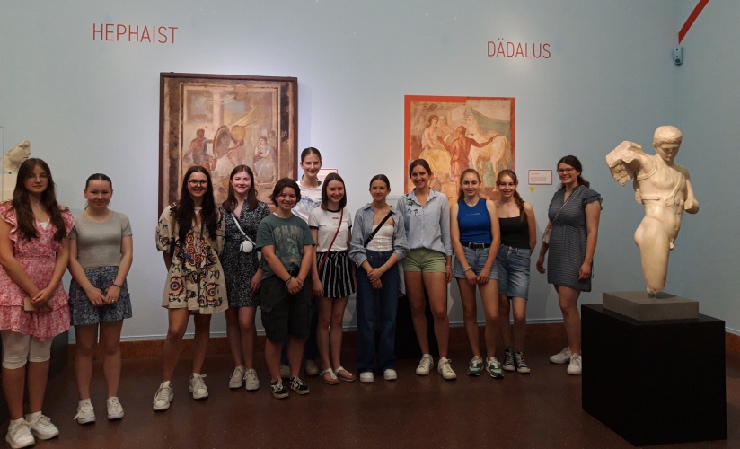 Am Samstag, 8. Juli 2023, besuchten Lateinerinnen der Stufen 8, E und Q die Ausstellung „Maschinenraum der Götter“ im Liebieghaus Frankfurt. In der Führung wurden uns ausgewählte Exponate und Installationen erklärt, die zeigten, dass Kunst, Wissenschaft und Technologie in der Antike nicht voneinander zu trennen sind. Dies gilt für die ägyptische, griechische und römische, aber auch für die arabische und asiatische Kultur. In ihren Mythen erdachten die Menschen Technologien von Robotern und Automaten und nahmen somit die realen Erfindungen vorweg.