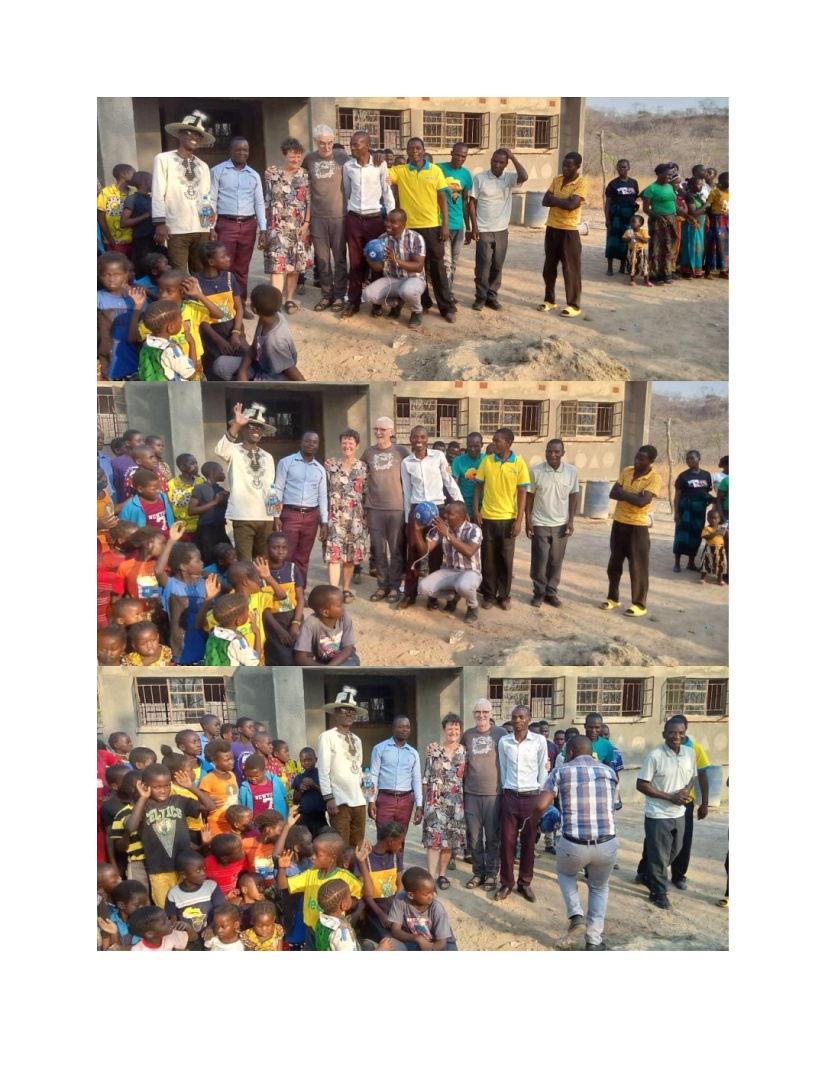Etwas länger dauerte der Besuch an der Umozi Schule, da sich die Schulgemeinde mit Reden und Gesang für den Bau des inzwischen fast fertigen Klassenraumblocks bedankte. Mit im Gepäck hatte Herr Herrmann einige gespendete Schutzanzüge und für jede Schule einen Fußball. Beides hoch willkommen! In den Gesprächen wurde schnell deutlich, wo die größten Herausforderungen liegen: Es wird mehr Ausbildung benötigt, die Kästen müssen öfter kontrolliert, repariert und gesäubert werden und es fehlt an Schutzkleidung, Smokern und allen anderen Imkerutensilien. Der Honigdiebstahl und auch die mutwillige Zerstörung einzelner Kästen ist ein weiteres Problem an einzelnen Schulen, dass durch Umhängen der Kästen in die Nähe der betroffenen Schulen und Sensibilisierung der Schul- und Dorfgemeinde für die Überwachung der Kastenstandorte bekämpft werden soll. Der Honigdiebstahl und die Zerstörung von Kästen sind Straftaten, die angezeigt werden müssen.