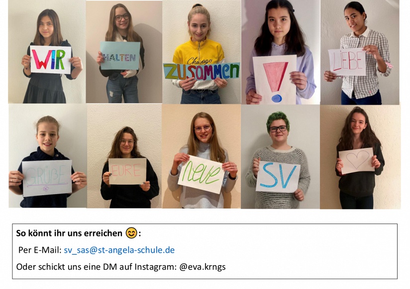 Untere Reihe (von links nach rechts): Antonia Kunz (Realschulsprecherinnen), Cynthia Henschel & Marie Michael (Oberstufensprecherinnen), Eva Krings & Anna Ritter (Schulsprecherinnen)