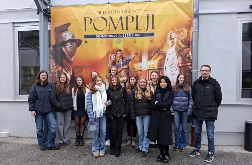 Am Nikolaustag reisten die Lateinerinnen zusammen mit Herrn Wolter und Frau Dr. Ruhl nach Pompeji – zumindest nach Ffm.-Heddernheim, wo sie in der Raumfabrik die tolle immersive Ausstellung besuchten und durch das 360°-Erlebnis wirklich in die tragische Geschichte der antiken Stadt Pompeji eintauchen konnten.