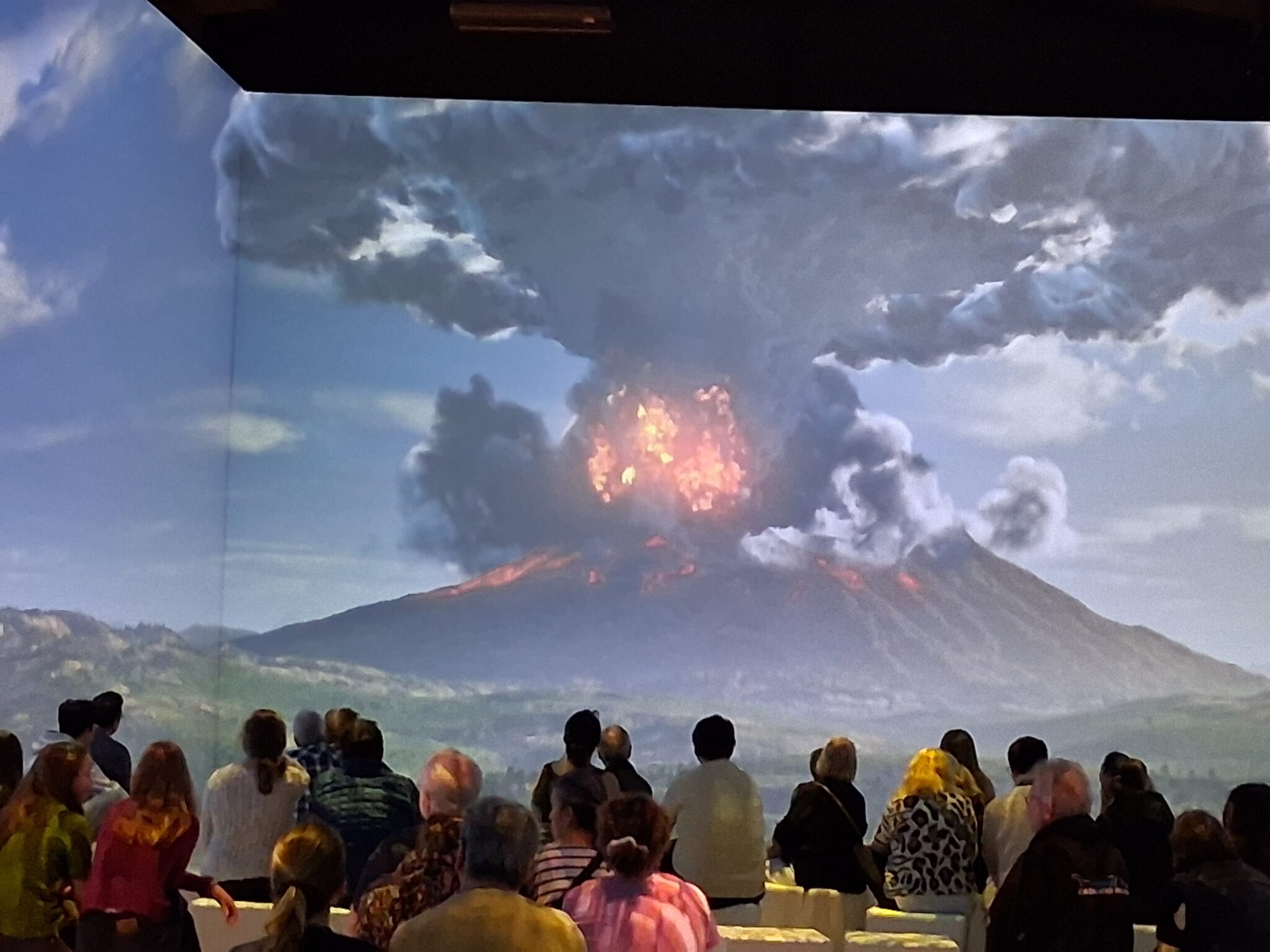 Am Nikolaustag reisten die Lateinerinnen zusammen mit Herrn Wolter und Frau Dr. Ruhl nach Pompeji – zumindest nach Ffm.-Heddernheim, wo sie in der Raumfabrik die tolle immersive Ausstellung besuchten und durch das 360°-Erlebnis wirklich in die tragische Geschichte der antiken Stadt Pompeji eintauchen konnten.