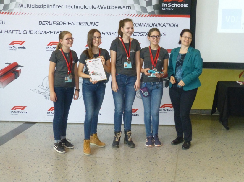 Am Samstag (16.03.19) fand an der Frankfurt University of Applied Sciences die Regionalmeisterschaft Mitte des Wettbewerbs „Formel 1 in der Schule“ statt. Zwei Teams unserer Schule konnten sich dort nach intensiver Vorbereitung mit der Konkurrenz aus verschiedenen Bundesländern sowie Osterreich und der Schweiz in der Juniorkategorie messen. Team Tornado belegte den 4. Platz und wurde gleichzeitig Vizemeister des Landes Hessen. Team Uschi-Bee konnte neben dem Sonderpreis für die beste Konstruktion in der Gesamtwertung den 2. Platz erringen und sicherte sich damit den Titel als Landesmeister Hessen 2019. Somit vertritt das Team Uschi-Bee unser Bundesland bei der Deutschen Meisterschaft am 11.05.2019 in Wolfsburg. Ein ganz herzlicher Dank geht an all unsere Sponsoren, besonders an Herrn Weimar und sein Team von der Frankfurt University of Applied Sciences, ohne die dieser Erfolg nicht möglich gewesen wäre.