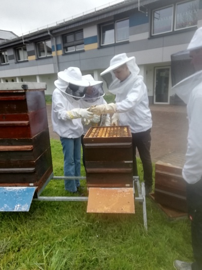 Insgesamt 4 Teams mit jeweils 3 Schüler:innen haben in Kirchhain am Jungimkerwettbewerb des Hessischen Imkerbundes teilgenommen. Mit am Start Antonia Angelone und Evita Silupu Oberauer aus der Imker AG. Sie haben sich erfolgreich den Themengebieten Honig, Imkergeräte, Trachtpflanzen, Arbeiten am Bienenvolk sowie einem Theorie-Teil (Quiz) gestellt. Der Tag war sehr informativ, herausfordernd und abwechslungsreich. Vollgestopft mit neuen Erkenntnisse sowie einer Urkunde und einem Sonderheft zum Thema Bienengesundheit in der Hand, fuhren sie am späten Nachmittag zusammen mit Betreuer Klaus Herrmann müde aber zufrieden zurück nach Königstein.