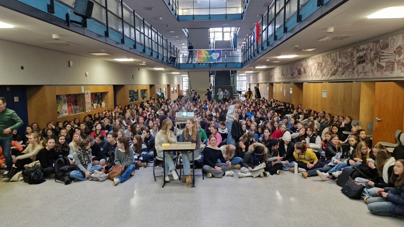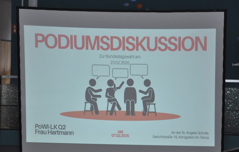 In Vorbereitung auf die Juniorwahl vom 18. – 20.2.25 fand am Freitag, den 7.2., eine Podiumsdiskussion für alle Schülerinnen der Jahrgangsstufen 8-Q4 statt, an der die Direktkandidaten des Wahlkreises (bzw. deren Vertreter) teilnahmen. Hierbei vertraten ihre Parteien: Thomas Völker (Die Linke), Fiona Byrne (Volt), Dr. Dieter Falk (Vertreter von Nancy Faeser, SPD), Dr. Anna Lührmann (Die Grünen), Bettina Stark-Watzinger (FDP), Norbert Altenkamp (CDU) sowie Christian Douglas (AfD). 90 Minuten lang konnten die Schülerinnen einen umfassenden Einblick erhalten, welche Positionen zu verschiedenen Themen die einzelnen Kandidaten bzw. deren Parteien vertreten. Wir danken allen Politikerinnen und Politikern für ihr Kommen sowie für den regen Austausch!