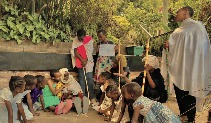 Jetzt, in der Adventszeit, üben die Kinder ein Krippenspiel ein.