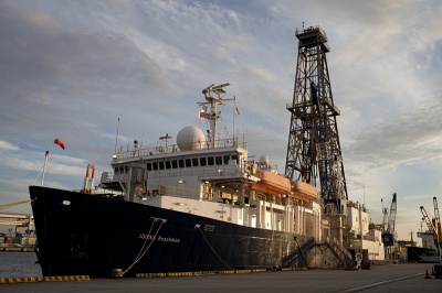 The JOIDES Resolution in port, Honmoku Berth No. B3, Yokohama, Japan. (Credit: Mark Reagan & IODP) [Photo ID: exp352_001]