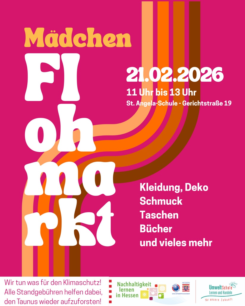 Die Schülerinnen der St. Angela-Schule verkaufen gut erhaltene Kleidung, Deko, Bücher und vieles mehr. Außerdem gibt es einen tollen Kuchenverkauf der Klassen G7d und R9a. Die Schülerinnen freuen sich über viele Besucher.