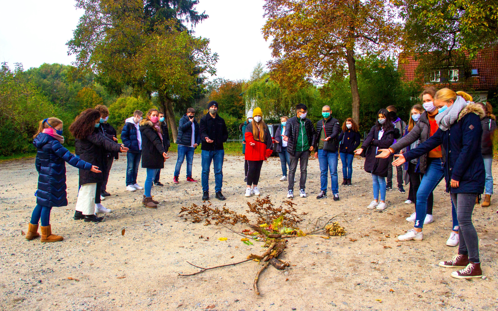 „Es ist sehr schön, dass sich Schülerinnen und Schüler unterschiedlicher Religionen begegnen und austauschen“, erklärte Karin Hildebrandt, Religionslehrerin an der St. Angela-Schule und Mit-Initiatorin des Projekttags. Mit ihr begleiteten weitere Lehrkräfte der Schulen und ein Religion – und Naturschutzteam des Abrahamischen Forums die Jugendlichen auf ihrem Weg durch die herbstliche Natur im Woogtal. Das alles unter dem Schein der Herbstsonne.
