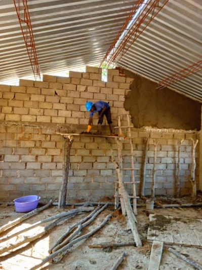 In Sambia startet die Honigernte und an der Umodzi Schule wurde mit dem Innenausbau begonnen. Schaut man sich das Bild mit dem Handwerker auf dem Gerüst „Marke Eigenbau“ genau an, versteht man, mit welchen Schwierigkeiten vor Ort gekämpft wird. Mal eben ein Rollgerüst aufstellen – das geht eben nicht. Wasser für den Verputz kommt nicht aus der Leitung, sondern muss vom 5 Kilometer entfernten Fluss angeschleppt werden.