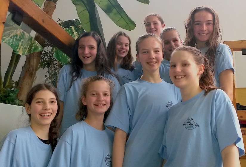 Folgende Schülerinnen schwammen zum Erfolg: Tabea Bechold, Lavinia Haber, Ella Haupt, Helena Herbst, Emma Karl, Hannah Karl, Elisabeth Knetsch, Annika Mattner, Celia Wandel