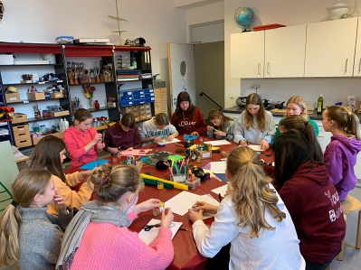 Es war wunderbar zu sehen, wie sich die Schülerinnen ins Zeug warfen, alles eifrig austesteten und die Zeit vergaßen….